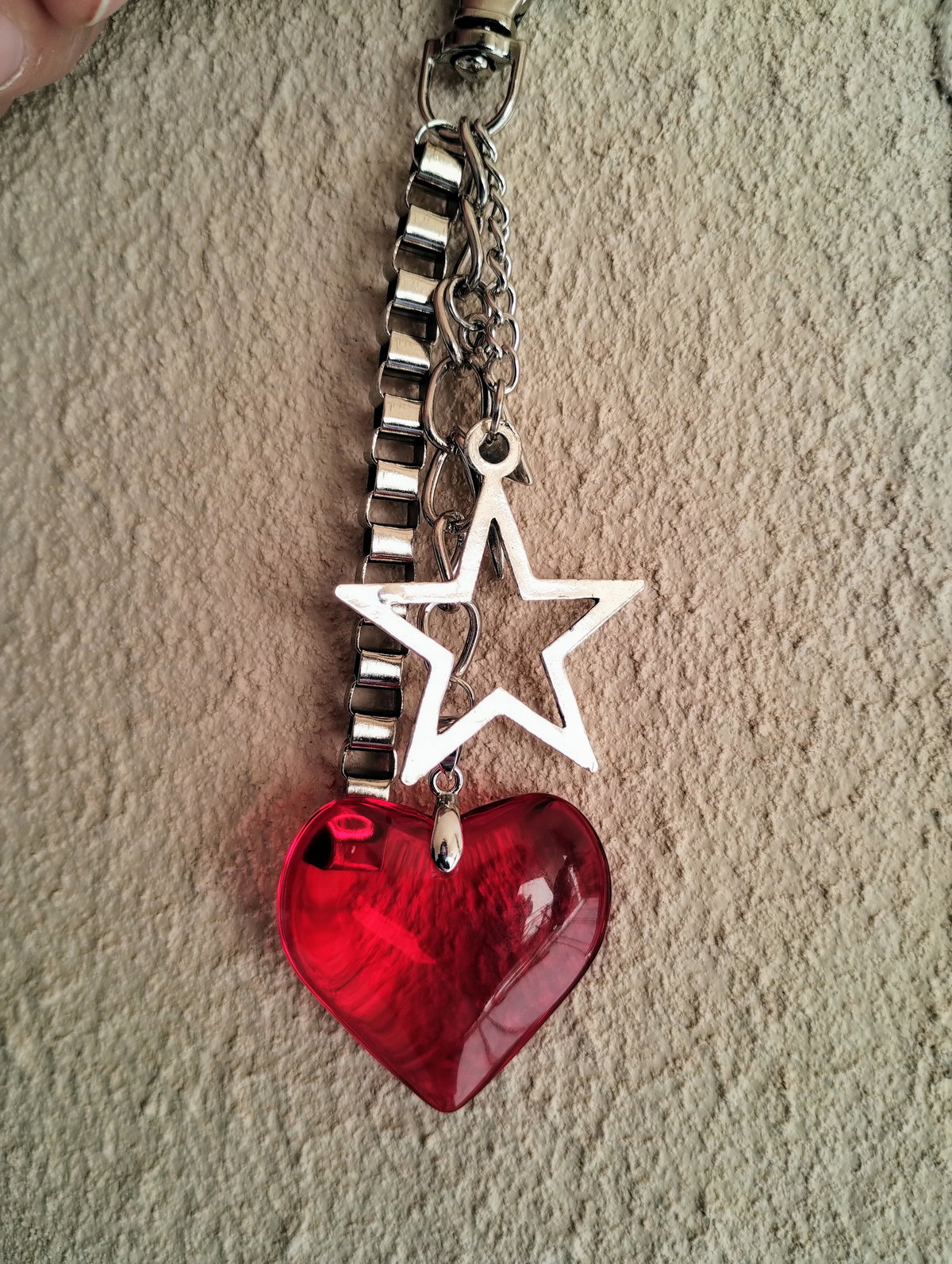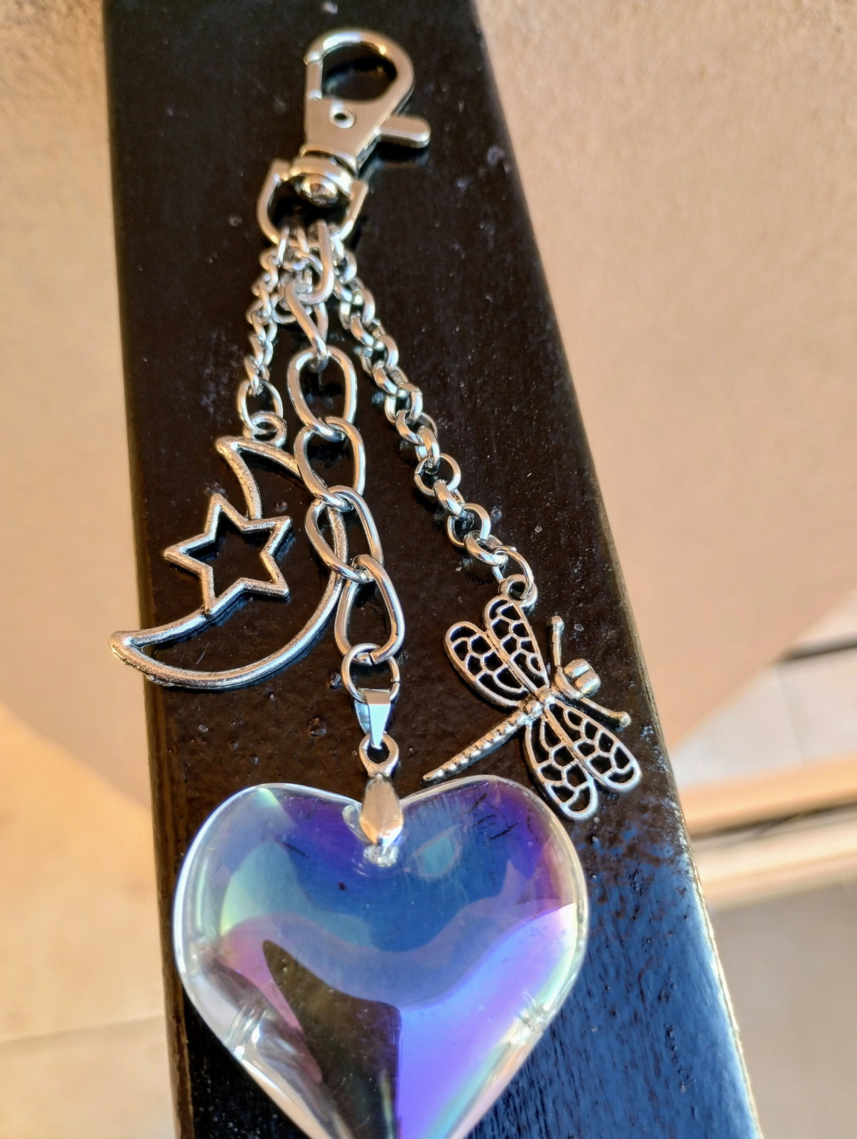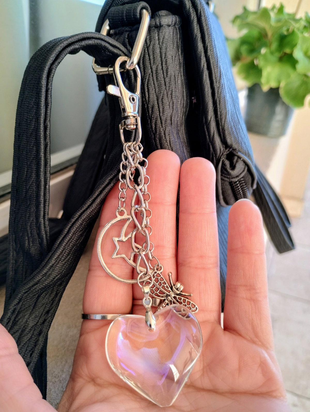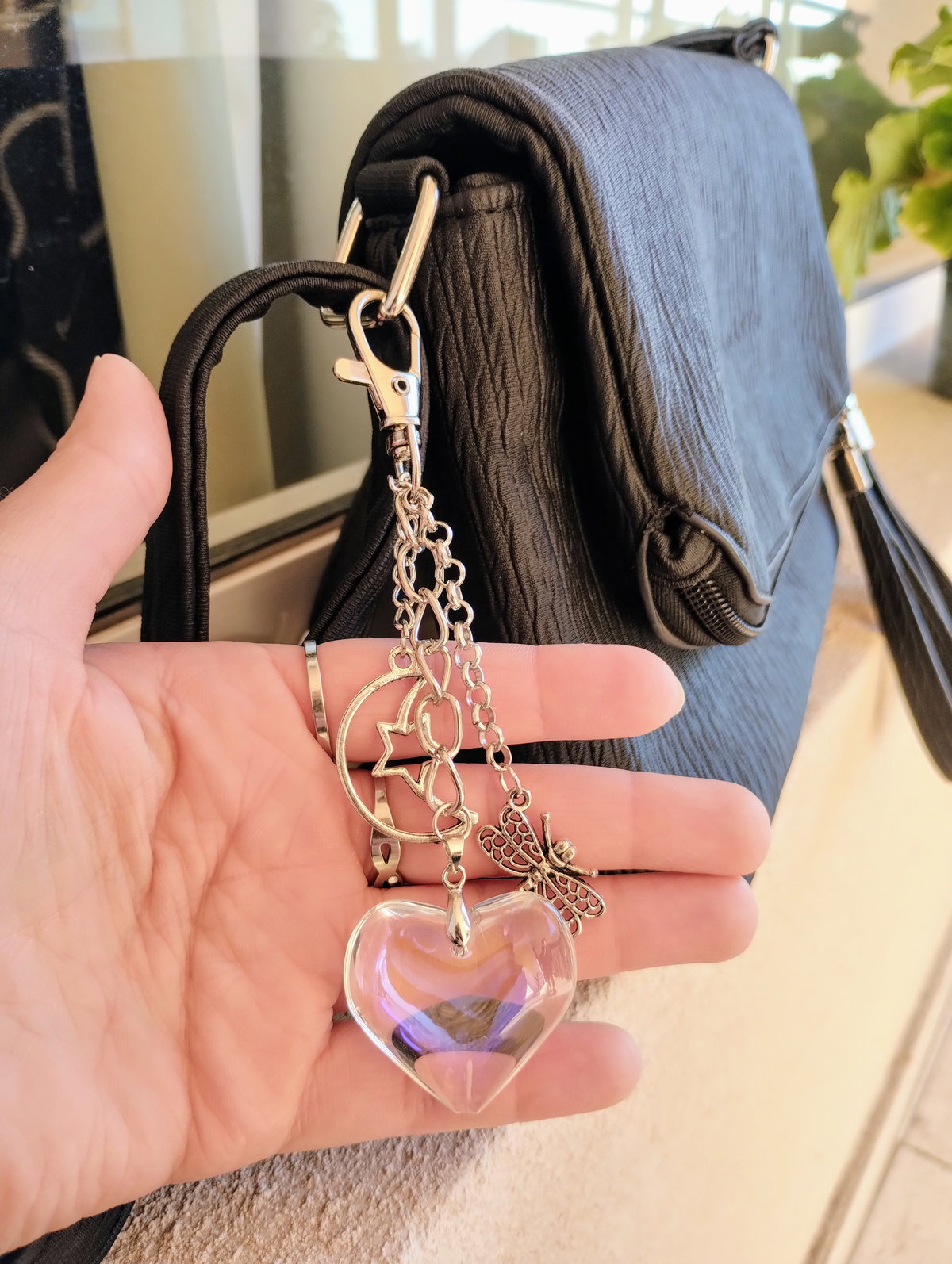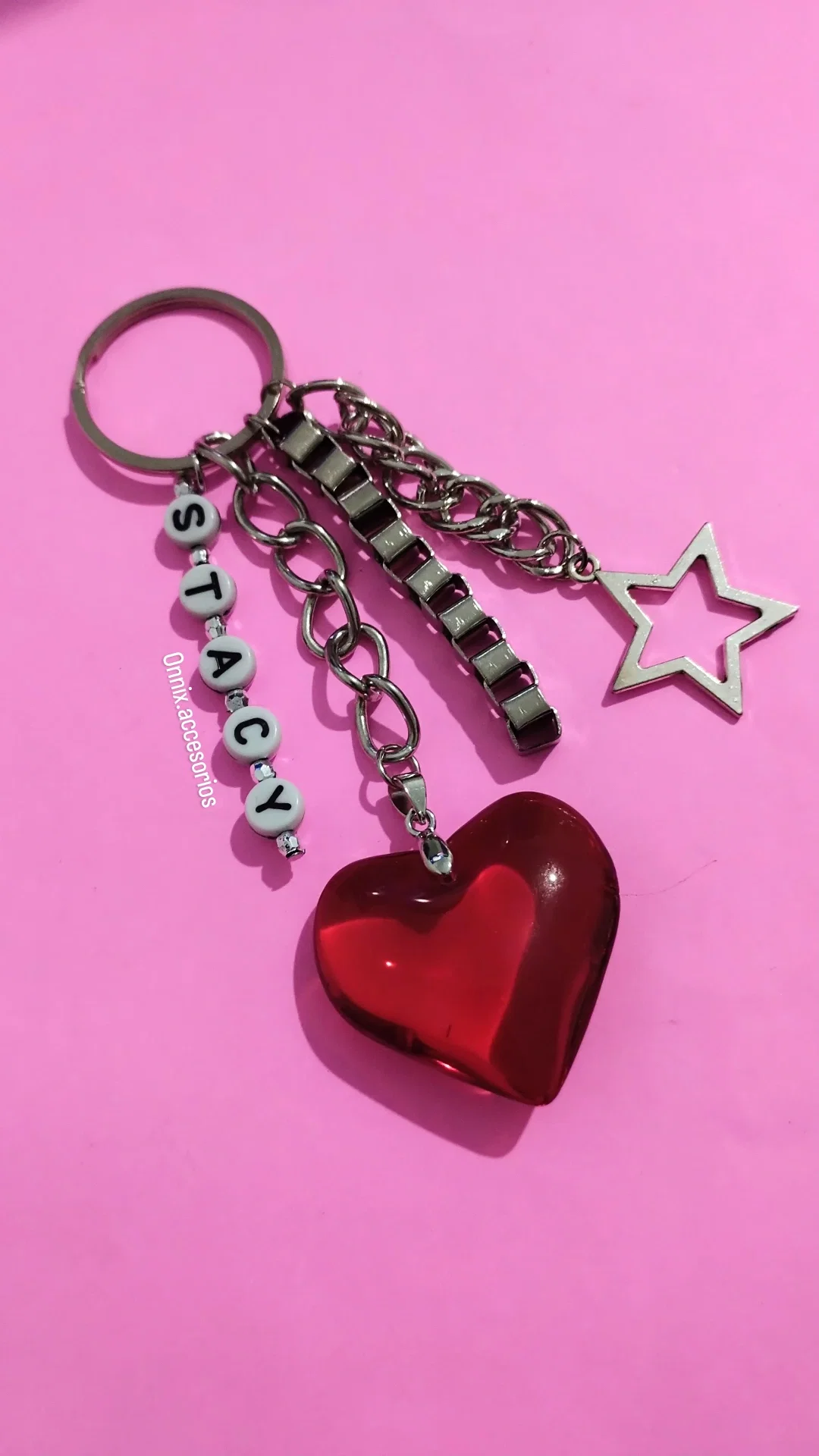 Llavero con corazón de vidrio, se pueden personalizar (Modificar cadenas, dijes, etc)