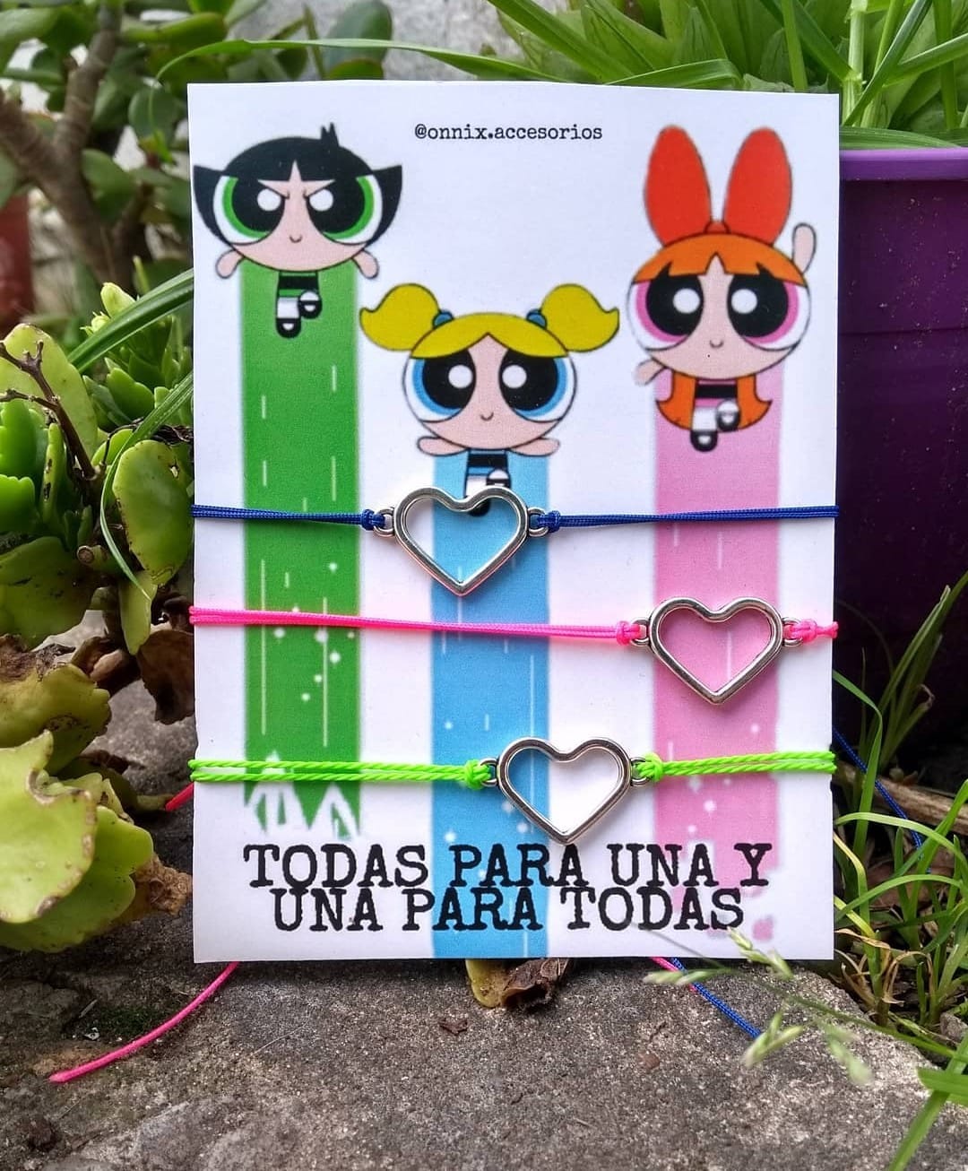 Pulseras hechas con hilo chino y dije de fundicion bañado en niquel.