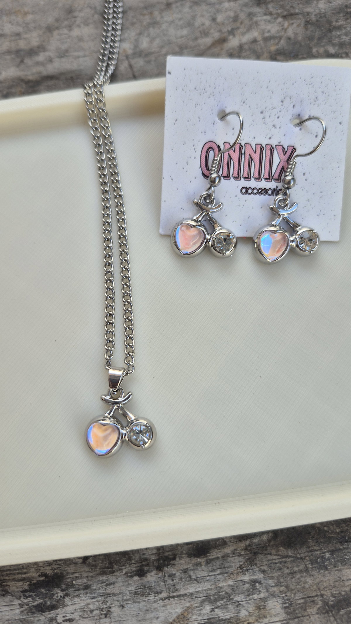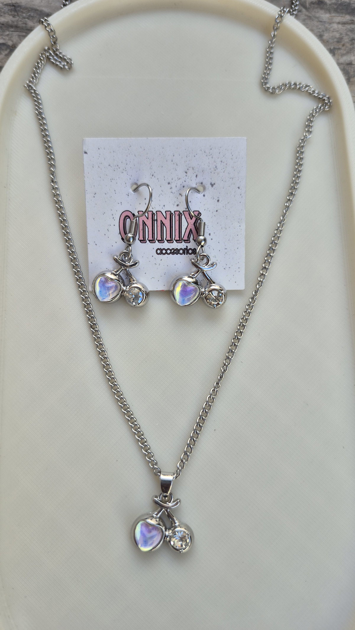 Aros + collar cereza corazon.