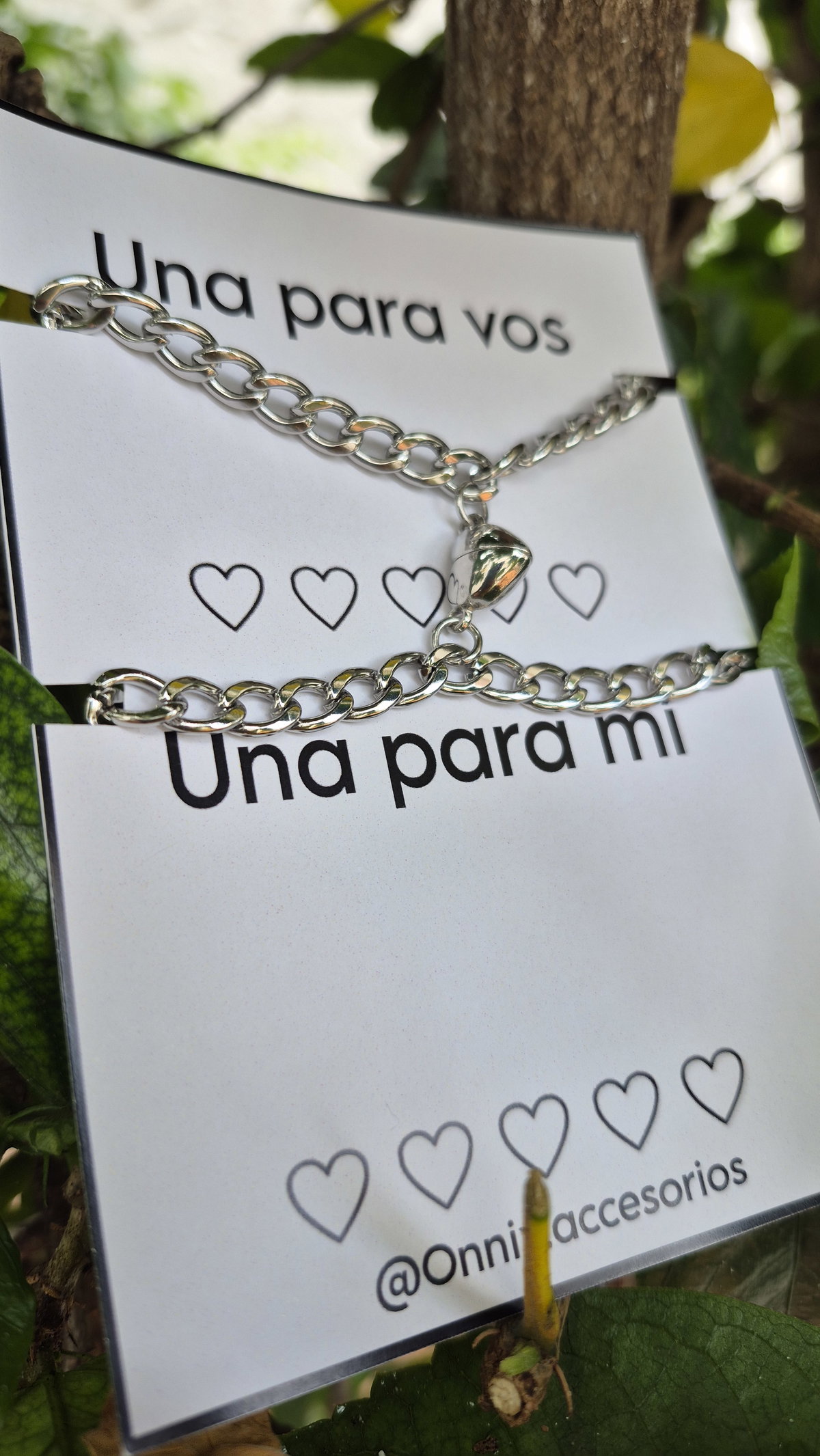 Pulseras para compartir con cadena de acero quirúrgico + corazon imán